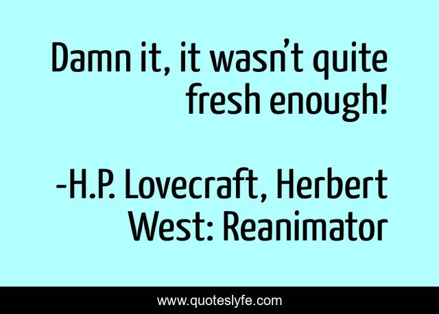"H.P. Lovecraft, Herbert West: Reanimator Quotes." Quoteslyfe.com, 2025. Sat. 06 Dec. 2025. <https://www.quoteslyfe.com/quote/Damn-it-it-wasn-t-quite-fresh-156499>.