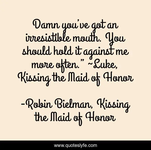 "Robin Bielman, Kissing the Maid of Honor Quotes." Quoteslyfe.com, 2025. Sat. 06 Dec. 2025. <https://www.quoteslyfe.com/quote/Damn-you-ve-got-an-irresistible-mouth-155433>.