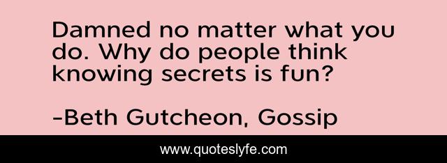 This page presents the quote "Damned no matter what you do. Why do people think knowing secrets is fun?". Author of this quote is Beth Gutcheon, Gossip. .