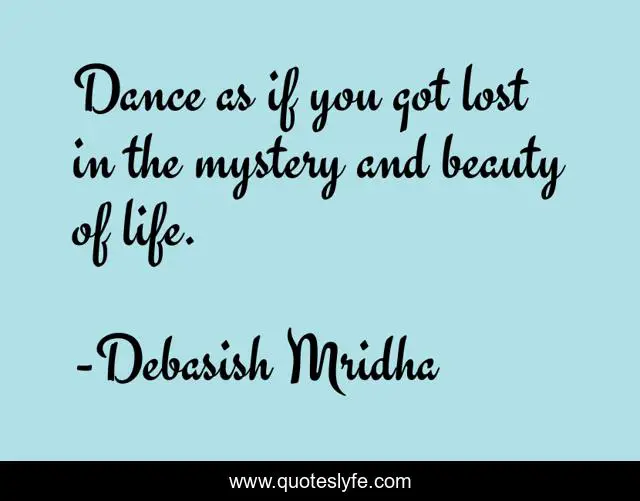 This page presents the quote "Dance as if you got lost in the mystery and beauty of life.". Author of this quote is Debasish Mridha. This quote is about philosophy, debasish-mridha, mystery-of-life, quotes, inspirational, dance-as-if-you-got-lost, enthusiasm, beauty-of-life, debasish-mridha-m-d,.