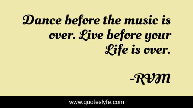 This page presents the quote "Dance before the music is over. Live before your Life is over.". Author of this quote is RVM. This quote is about motivation, inspiration,.