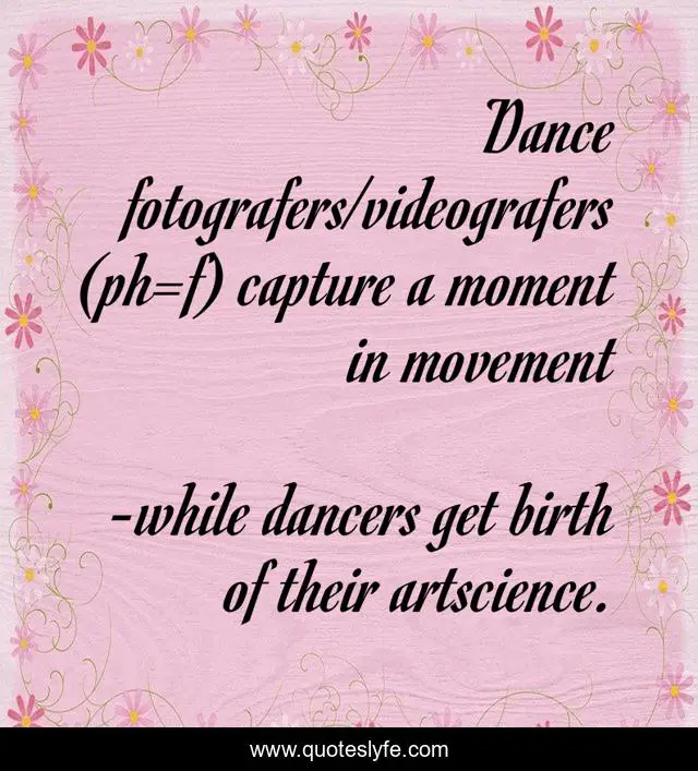 "while dancers get birth of their artscience. Quotes." Quoteslyfe.com, 2025. Sun. 07 Dec. 2025. <https://www.quoteslyfe.com/quote/Dance-fotografers-videografers-ph-f-capture-a-66373>.