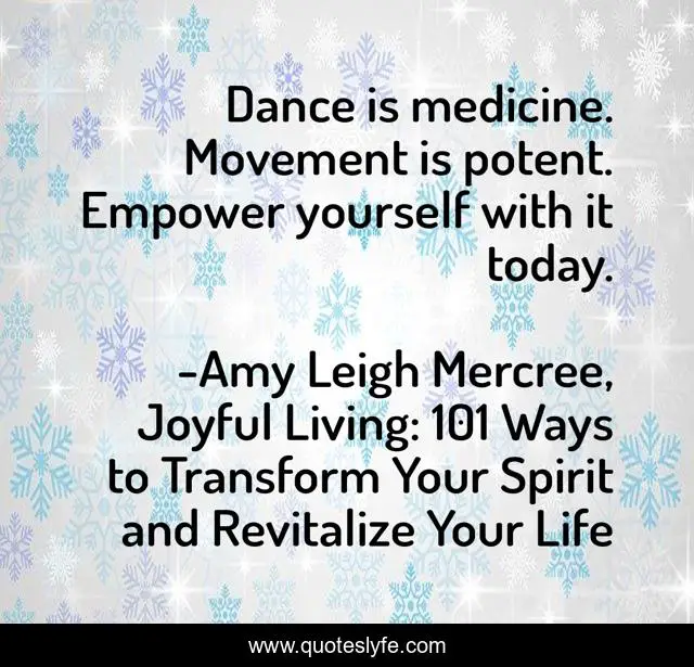 "Amy Leigh Mercree, Joyful Living: 101 Ways to Transform Your Spirit and Revitalize Your Life Quotes." Quoteslyfe.com, 2025. Mon. 08 Dec. 2025. <https://www.quoteslyfe.com/quote/Dance-is-medicine-Movement-is-potent-Empower-15047>.