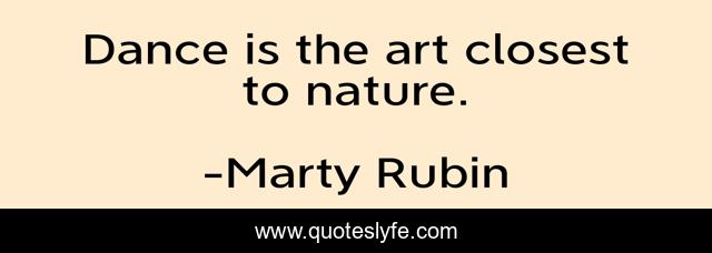 This page presents the quote "Dance is the art closest to nature.". Author of this quote is Marty Rubin. This quote is about dance, nature,.