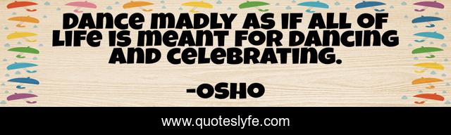This page presents the quote "Dance madly as if all of life is meant for dancing and celebrating.". Author of this quote is Osho. This quote is about celebrate-life, dance,.