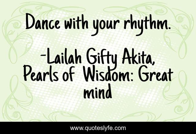 "Lailah Gifty Akita, Pearls of Wisdom: Great mind Quotes." Quoteslyfe.com, 2025. Sun. 07 Dec. 2025. <https://www.quoteslyfe.com/quote/Dance-with-your-rhythm-91863>.