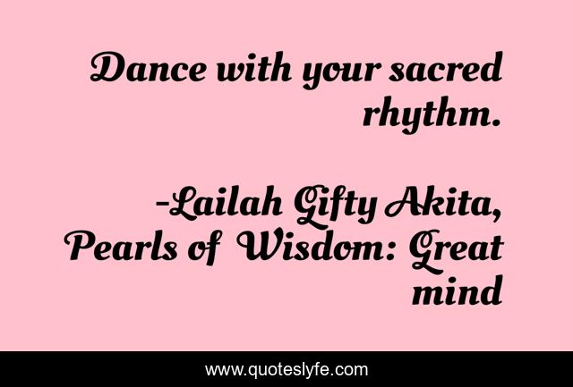 "Lailah Gifty Akita, Pearls of Wisdom: Great mind Quotes." Quoteslyfe.com, 2025. Fri. 05 Dec. 2025. <https://www.quoteslyfe.com/quote/Dance-with-your-sacred-rhythm-141707>.