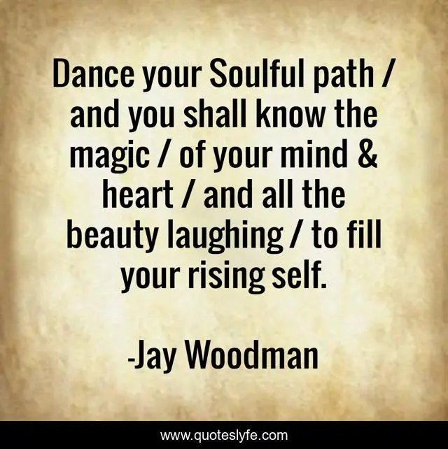 "Jay Woodman Quotes." Quoteslyfe.com, 2025. Sat. 06 Dec. 2025. <https://www.quoteslyfe.com/quote/Dance-your-Soulful-path-and-you-shall-87643>.