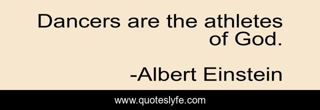 This page presents the quote "Dancers are the athletes of God.". Author of this quote is Albert Einstein. This quote is about life, albert,.