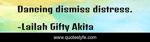 This page presents the quote "Dancing dismiss distress.". Author of this quote is Lailah Gifty Akita. This quote is about dance, inspiration, distress, sports,.