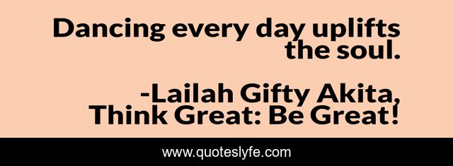 "Lailah Gifty Akita, Think Great: Be Great! Quotes." Quoteslyfe.com, 2025. Mon. 08 Dec. 2025. <https://www.quoteslyfe.com/quote/Dancing-every-day-uplifts-the-soul-63746>.