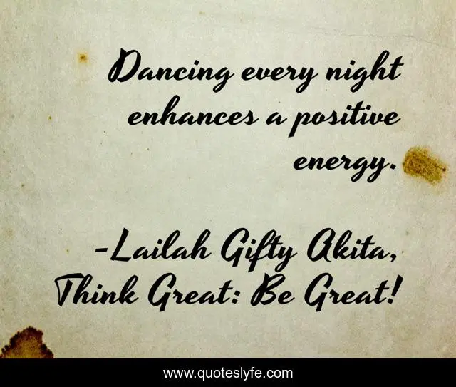"Lailah Gifty Akita, Think Great: Be Great! Quotes." Quoteslyfe.com, 2025. Sat. 06 Dec. 2025. <https://www.quoteslyfe.com/quote/Dancing-every-night-enhances-a-positive-energy-79568>.