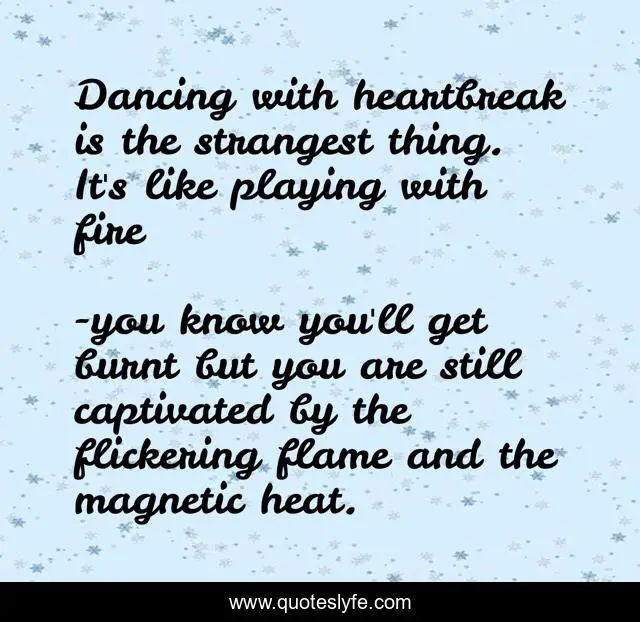 "you know you'll get burnt but you are still captivated by the flickering flame and the magnetic heat. Quotes." Quoteslyfe.com, 2025. Sat. 06 Dec. 2025. <https://www.quoteslyfe.com/quote/Dancing-with-heartbreak-is-the-strangest-thing-173030>.