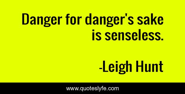 "Leigh Hunt Quotes." Quoteslyfe.com, 2025. Mon. 08 Dec. 2025. <https://www.quoteslyfe.com/quote/Danger-for-danger-s-sake-is-senseless-262861>.
