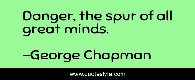 This page presents the quote "Danger, the spur of all great minds.". Author of this quote is George Chapman. This quote is about great-minds, danger, inspiration,.