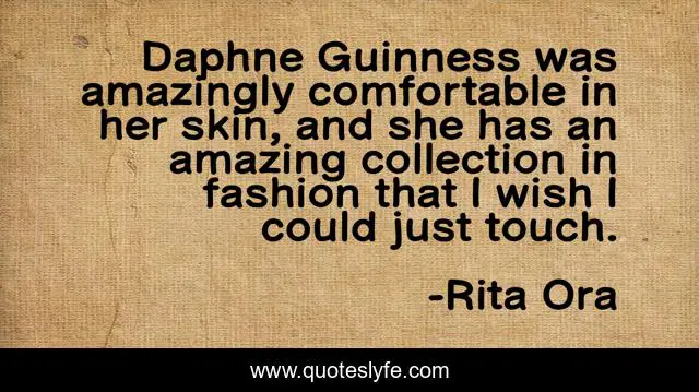 This page presents the quote "Daphne Guinness was amazingly comfortable in her skin, and she has an amazing collection in fashion that I wish I could just touch.". Author of this quote is Rita Ora. This quote is about wish, fashion, she,.