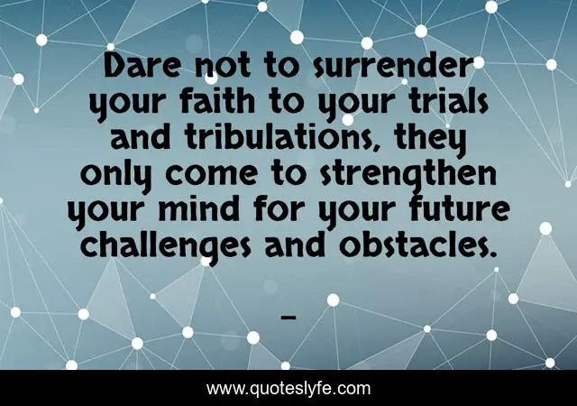 Dare not to surrender your faith to your trials and tribulations, they only come to strengthen your mind for your future challenges and obstacles.