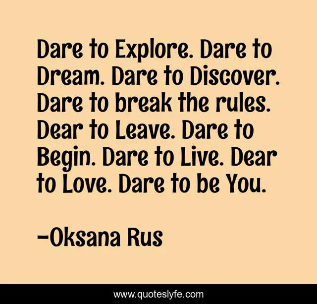"Oksana Rus Quotes." Quoteslyfe.com, 2025. Mon. 08 Dec. 2025. <https://www.quoteslyfe.com/quote/Dare-to-Explore-Dare-to-Dream-Dare-48136>.