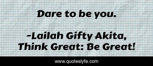 "Lailah Gifty Akita, Think Great: Be Great! Quotes." Quoteslyfe.com, 2025. Fri. 05 Dec. 2025. <https://www.quoteslyfe.com/quote/Dare-to-be-you-92743>.