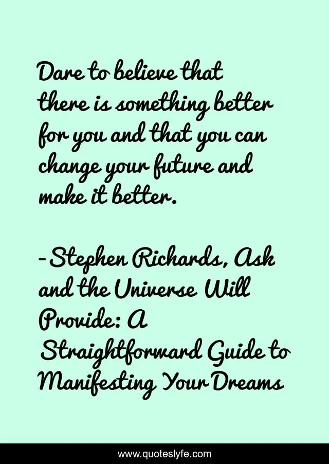 "Stephen Richards, Ask and the Universe Will Provide: A Straightforward Guide to Manifesting Your Dreams Quotes." Quoteslyfe.com, 2025. Sat. 06 Dec. 2025. <https://www.quoteslyfe.com/quote/Dare-to-believe-that-there-is-something-44775>.