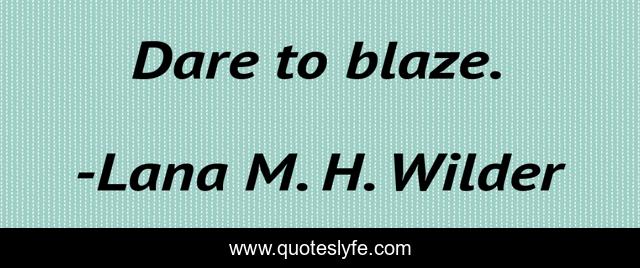 "Lana M. H. Wilder Quotes." Quoteslyfe.com, 2025. Tue. 09 Dec. 2025. <https://www.quoteslyfe.com/quote/Dare-to-blaze-23353>.