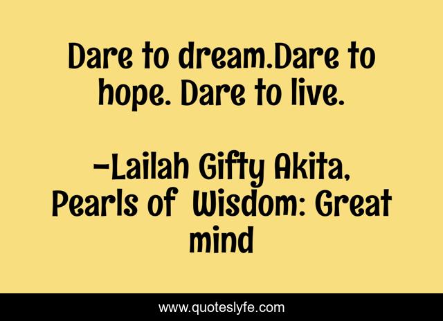 "Lailah Gifty Akita, Pearls of Wisdom: Great mind Quotes." Quoteslyfe.com, 2025. Sun. 07 Dec. 2025. <https://www.quoteslyfe.com/quote/Dare-to-dream-Dare-to-hope-Dare-130371>.