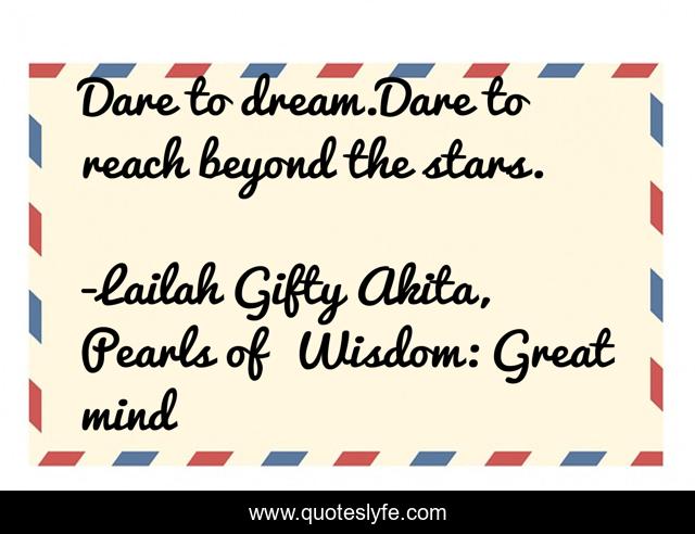 "Lailah Gifty Akita, Pearls of Wisdom: Great mind Quotes." Quoteslyfe.com, 2025. Sat. 06 Dec. 2025. <https://www.quoteslyfe.com/quote/Dare-to-dream-Dare-to-reach-beyond-85196>.