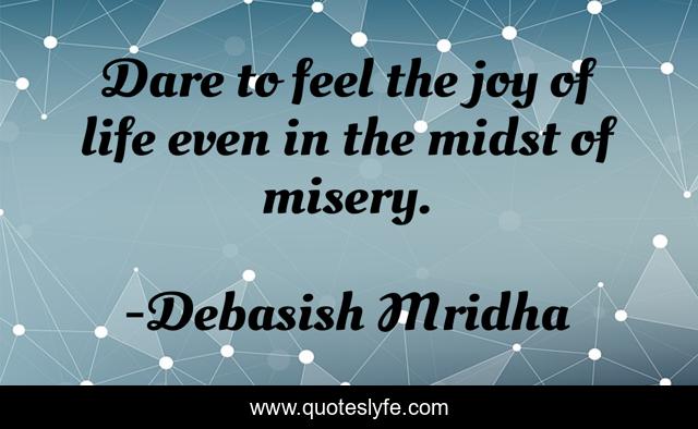 This page presents the quote "Dare to feel the joy of life even in the midst of misery.". Author of this quote is Debasish Mridha. This quote is about life, love, knowledge, inspirational, intelligence, philosophy, wisdom, quotes, affection,.