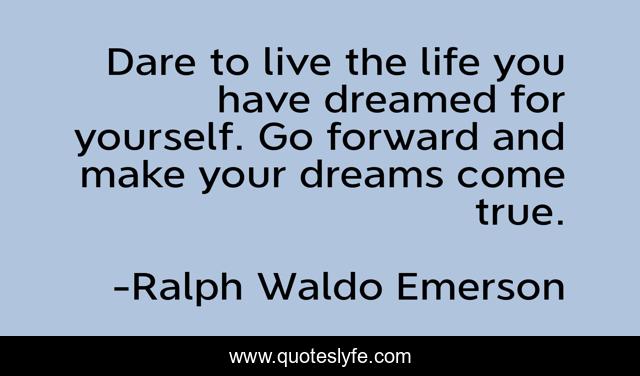 This page presents the quote "Dare to live the life you have dreamed for yourself. Go forward and make your dreams come true.". Author of this quote is Ralph Waldo Emerson. .