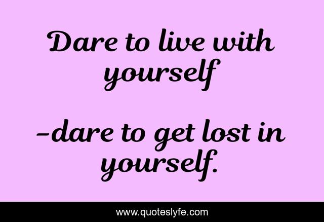 This page presents the quote "Dare to live with yourself". Author of this quote is dare to get lost in yourself.. .