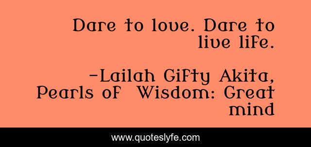 "Lailah Gifty Akita, Pearls of Wisdom: Great mind Quotes." Quoteslyfe.com, 2025. Sat. 06 Dec. 2025. <https://www.quoteslyfe.com/quote/Dare-to-love-Dare-to-live-life-77384>.