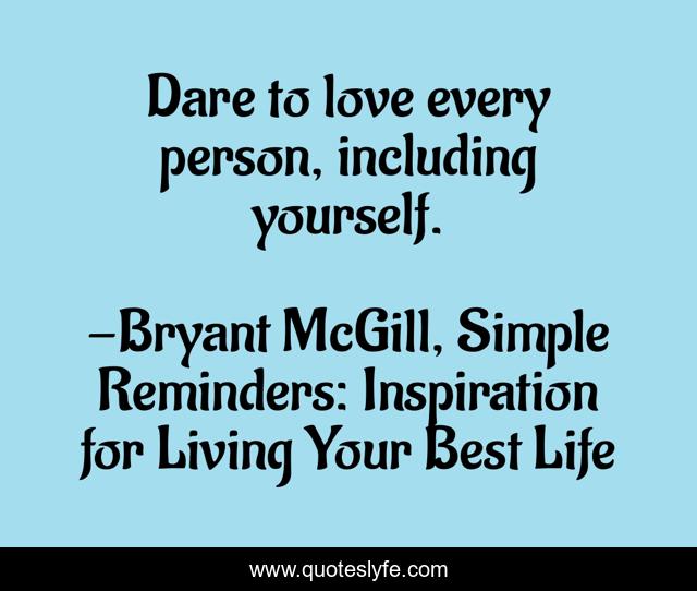 "Bryant McGill, Simple Reminders: Inspiration for Living Your Best Life Quotes." Quoteslyfe.com, 2025. Fri. 05 Dec. 2025. <https://www.quoteslyfe.com/quote/Dare-to-love-every-person-including-yourself-135299>.