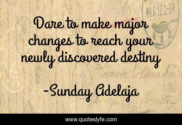 This page presents the quote "Dare to make major changes to reach your newly discovered destiny". Author of this quote is Sunday Adelaja. This quote is about destiny, change, dare, discovery,.