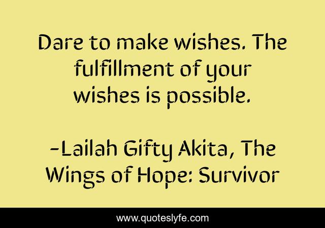 "Lailah Gifty Akita, The Wings of Hope: Survivor Quotes." Quoteslyfe.com, 2025. Sat. 06 Dec. 2025. <https://www.quoteslyfe.com/quote/Dare-to-make-wishes-The-fulfillment-of-98909>.