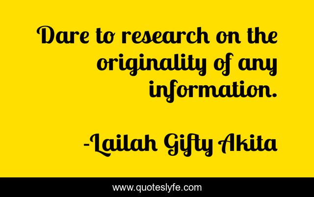 "Lailah Gifty Akita Quotes." Quoteslyfe.com, 2025. Mon. 08 Dec. 2025. <https://www.quoteslyfe.com/quote/Dare-to-research-on-the-originality-of-31660>.