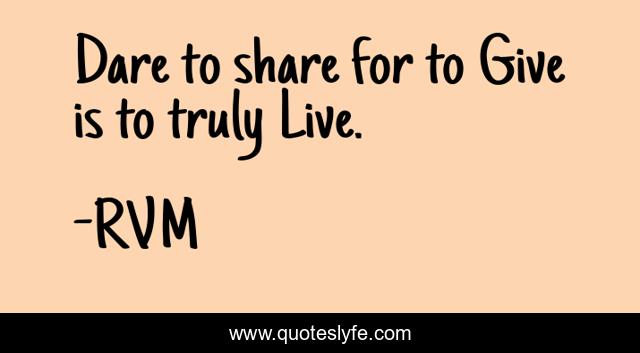 This page presents the quote "Dare to share for to Give is to truly Live.". Author of this quote is RVM. This quote is about motivation, inspiration,.
