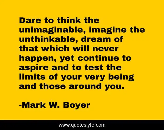 "Mark W. Boyer Quotes." Quoteslyfe.com, 2025. Sun. 07 Dec. 2025. <https://www.quoteslyfe.com/quote/Dare-to-think-the-unimaginable-imagine-the-237638>.