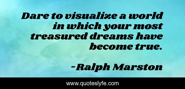 This page presents the quote "Dare to visualize a world in which your most treasured dreams have become true.". Author of this quote is Ralph Marston. This quote is about world, true, dare,.