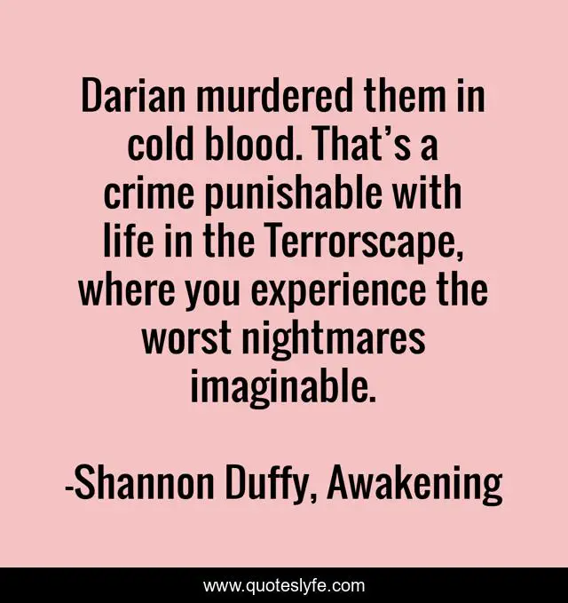 "Shannon Duffy, Awakening Quotes." Quoteslyfe.com, 2025. Fri. 05 Dec. 2025. <https://www.quoteslyfe.com/quote/Darian-murdered-them-in-cold-blood-That-188560>.