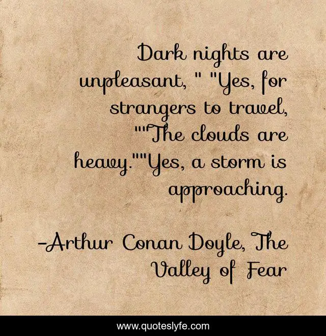 "Arthur Conan Doyle, The Valley of Fear Quotes." Quoteslyfe.com, 2025. Fri. 05 Dec. 2025. <https://www.quoteslyfe.com/quote/Dark-nights-are-unpleasant-Yes-for-strangers-242588>.