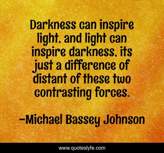 "Michael Bassey Johnson Quotes." Quoteslyfe.com, 2025. Mon. 08 Dec. 2025. <https://www.quoteslyfe.com/quote/Darkness-can-inspire-light-and-light-can-118974>.