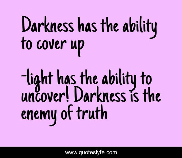 "light has the ability to uncover! Darkness is the enemy of truth Quotes." Quoteslyfe.com, 2025. Fri. 05 Dec. 2025. <https://www.quoteslyfe.com/quote/Darkness-has-the-ability-to-cover-up-119085>.