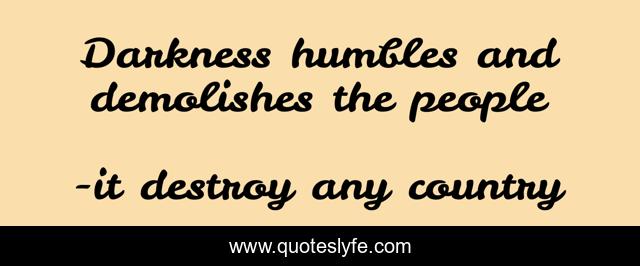 This page presents the quote "Darkness humbles and demolishes the people". Author of this quote is it destroy any country. .