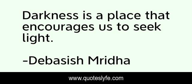 This page presents the quote "Darkness is a place that encourages us to seek light.". Author of this quote is Debasish Mridha. This quote is about debasish, darkness, mridha, philosophy, inspirational, seek-light, enthusiasm,.