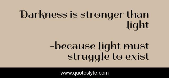 This page presents the quote "Darkness is stronger than light". Author of this quote is because light must struggle to exist. .