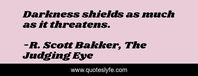 This page presents the quote "Darkness shields as much as it threatens.". Author of this quote is R. Scott Bakker, The Judging Eye. This quote is about pg-342, darkness,.