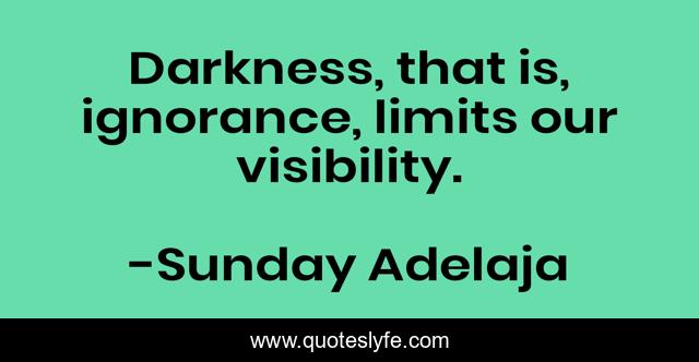 This page presents the quote "Darkness, that is, ignorance, limits our visibility.". Author of this quote is Sunday Adelaja. This quote is about darkness, visibility, ignorance,.