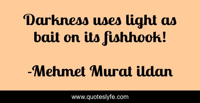 This page presents the quote "Darkness uses light as bait on its fishhook!". Author of this quote is Mehmet Murat ildan. .