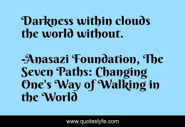 "Anasazi Foundation, The Seven Paths: Changing One's Way of Walking in the World Quotes." Quoteslyfe.com, 2025. Fri. 05 Dec. 2025. <https://www.quoteslyfe.com/quote/Darkness-within-clouds-the-world-without-89545>.
