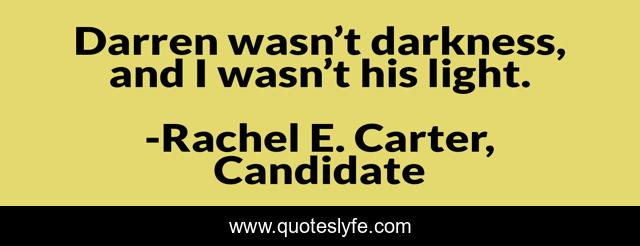 "Rachel E. Carter, Candidate Quotes." Quoteslyfe.com, 2025. Sun. 07 Dec. 2025. <https://www.quoteslyfe.com/quote/Darren-wasn-t-darkness-and-I-wasn-118612>.